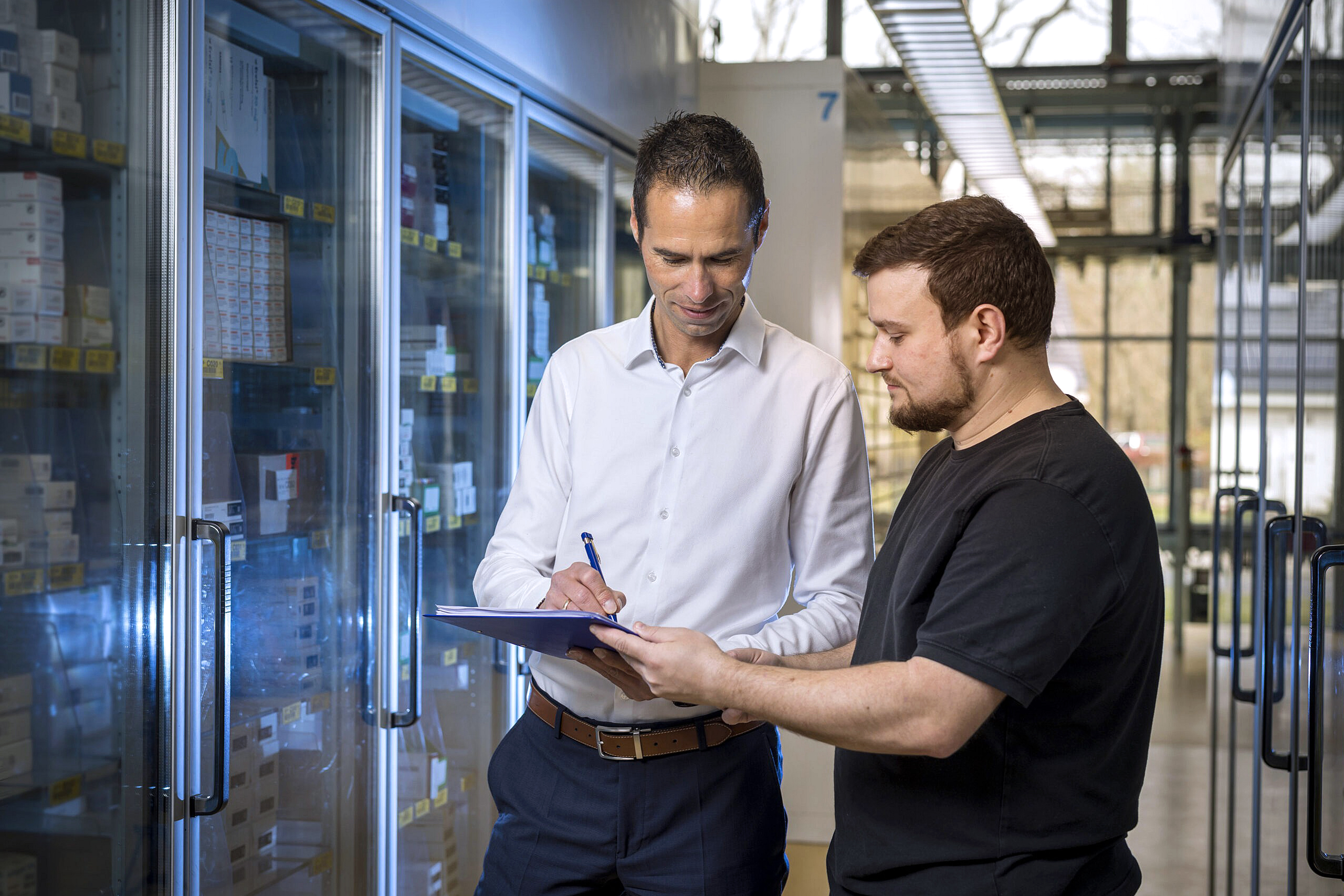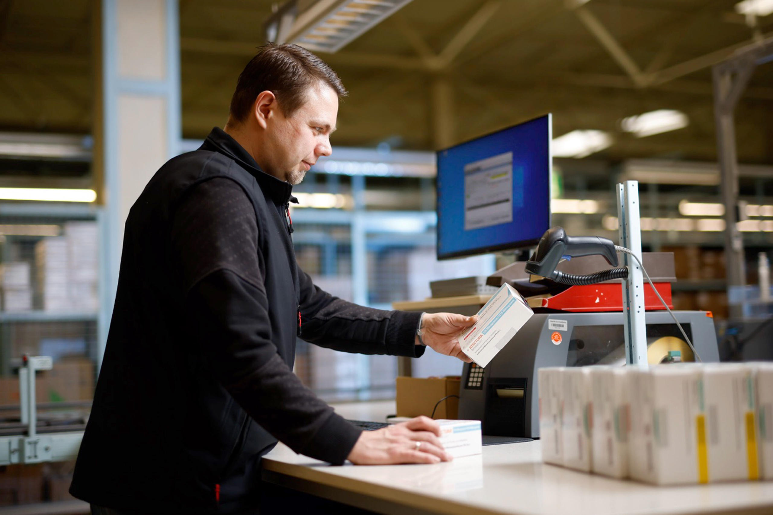 Die Aufgaben sind vielfältig. Lageristen im Wareneingang prüfen und dokumentieren neue Lieferungen, damit der Weg jedes einzelnen Medikaments nachverfolgt werden kann. Speziell geschulte Fachkräfte überwachen die Kühlung sensibler Arzneimittel und stehen damit für die Qualität und Sicherheit der Medikamente ein. Im Vier-Augen-Prinzip werden empfindliche Impfstoffe verpackt. Und in der Auslieferung wird unter Hochdruck gearbeitet, damit gerade erst bestellte Medikamente pünktlich und zuverlässig bei den Apotheken ankommen.